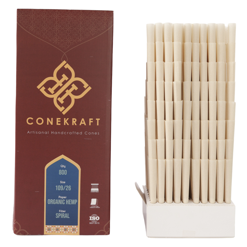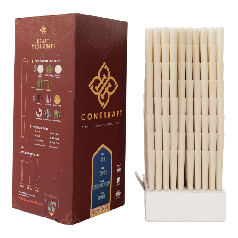 Conekraft’s 109mm organic hemp paper pre-rolled cone is meticulously tailored to accommodate 1-gram pre-rolls, offering efficiency and convenience with its compatibility with industry-standard knockboxes. These cones are meticulously crafted from 100% wood pulp ultra-thin European rolling paper, featuring a distinctive natural brown hue that sets them apart from their white counterparts. The less refined appearance appeals to consumers who prefer a natural, unprocessed aesthetic. Beyond aesthetics, these brown pre-roll cones are engineered for a smooth and even burn, enhancing the overall appeal of your products. With Conekraft’s versatile 109mm cone, you can efficiently meet the demand for 1-gram pre-rolls while providing a unique, high-quality experience to a diverse range of customers.