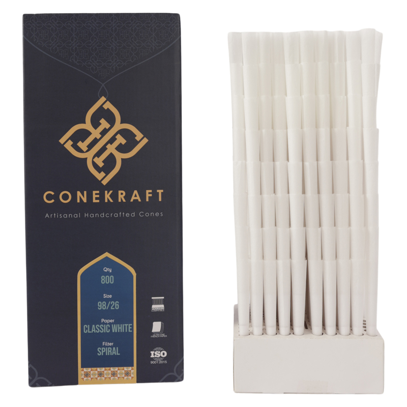 Conekraft proudly introduces its 98mm Pre-Rolled Cone, meticulously crafted for the ideal ¾-gram pre-roll, accommodating up to 1 gram depending on the chosen flower’s characteristics. Crafted from ultra-thin European rolling paper, our natural, brown cones maintain their unique hue through lignin retention, allowing the inner beauty of the flower to shine through. In contrast, our refined, white cones offer a flavor-free, transparent experience without the need for bleaching. All our cones undergo rigorous lab testing, surpassing industry standards and coming with comprehensive compliance documentation to assure product quality. Each cone is meticulously rolled to industry-standard sizes, ensuring seamless compatibility with your cone-filling machines. Choose Conekraft for a smoking experience distinguished by superior quality and craftsmanship.